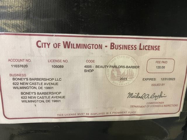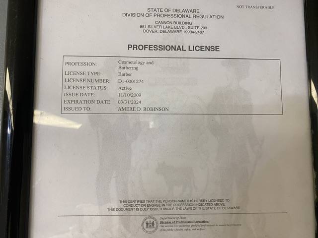 PROFESSIONAL MASTER BARBER LICENSE OF DELAWARE #D-1 0001274